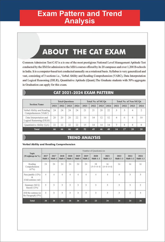 ✍ 3 sets each of CAT 2024,2023, 2022, 2021, 2020 & 2019 papers and 22 Papers from 2018 - 1994 with detailed solutions are included in this book.