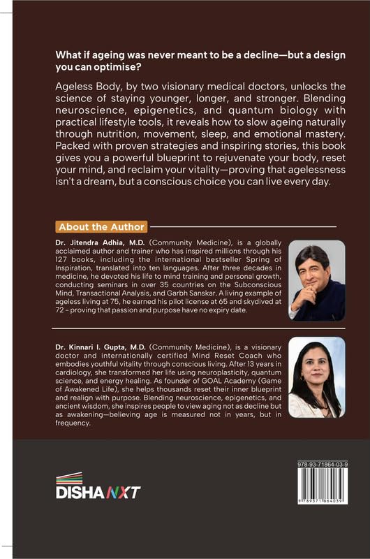 Ageless Body by Dr. Jitendra Adhia and Dr. Kinnari I. Gupta shatters everything you think you know about aging. Blending cutting-edge medical science with timeless spiritual wisdom, this book reveals how your thoughts, emotions, and habits can literally rewrite your biological age.