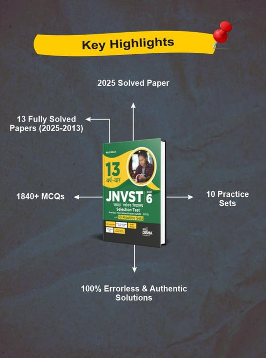Disha 13 Varsh-vaar JNVST Kaksha 6 Jawahar Navodaya Vidyalaya Selection Test Previous Year Solved Papers (2025 - 2013) with 10 Practice Sets 4th Hindi Edition| Class VI PYQs & Model Tests |