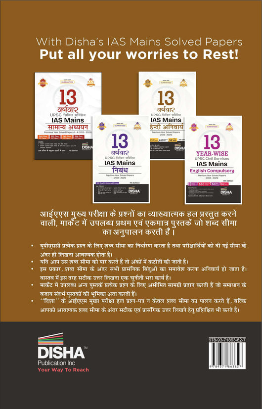Disha 13 Varshvaar UPSC Civil Services IAS Mains Hindi Anivarya Previous Year Solved Papers (2013 - 2025) 7th Edn | PYQs Question Bank | Precis, Comprehension, Essay Writing, Grammar | For 2026 Exam