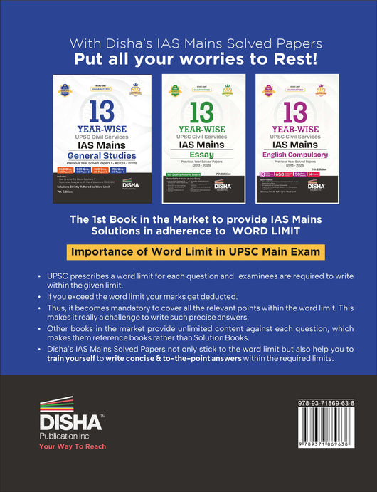 The updated 7th Edition of 13 Year-wise UPSC Civil Services IAS Mains General Studies Previous Year Solved Papers 1 to 4 (2013 - 2025) consists of Past 13 years Solved Papers of the General Studies Papers 1 to 4 in Year-wise format.