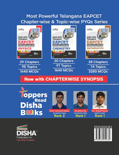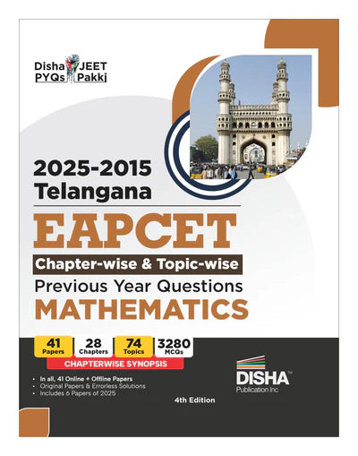 Disha 2025 - 2015 Telangana EAPCET Chapter-wise & Topic-wise Physics, Chemistry & Mathematics Previous Year Questions with Synopsis 4th Edition| 7000+ PYQs PCM Question Bank for 2026 Exams | EAMCET