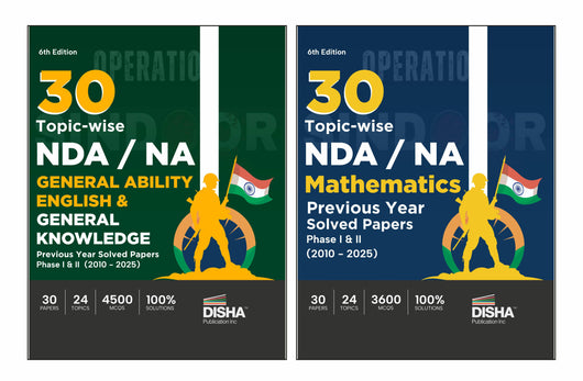 Disha Combo (2 Books) 30 Topic-wise NDA/ NA Mathematics, General Ability English & General Knowledge Previous Year Solved Papers (2010 - 2025) 6th Edition | 16 Year Authentic Papers | 8050 MCQs