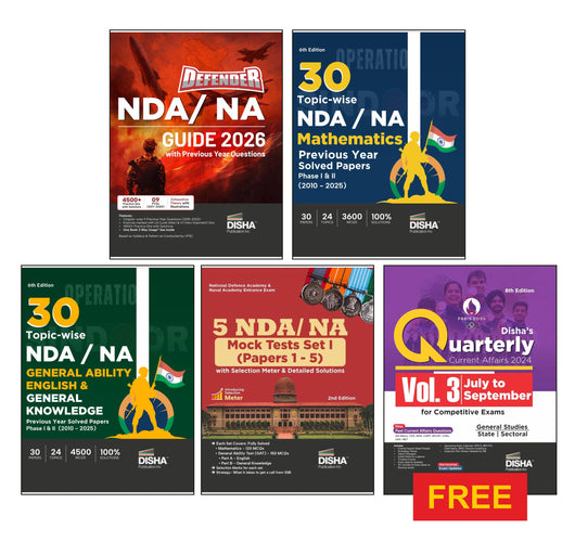 Disha Combo (Set of 5 Books) NDA/ NA Study Package - Guide + 38 Previous Year Solved Papers + 5 Practice Sets | Mathematics, English & General Knowledge with Free Quarterly Magazine 4th Edition