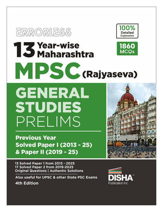 Disha Errorless 13 Year-wise Maharashtra MPSC (Rajyaseva) General Studies Prelims Previous Year Solved Paper 1 (2013 - 2025) & Paper 2 (2019 - 2025) 4th Edition | PYQs Question Bank