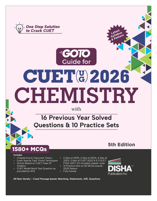 Disha’s updated 5th edition of the book ‘Go To Guide for CUET (UG) Chemistry with 16 Previous Year Solved Papers & 10 Practice Sets has been prepared as per the changed pattern and syllabus of CUET.
