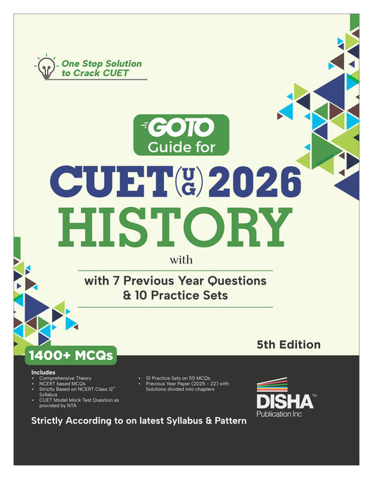 Disha’s updated 5th edition of the book ‘Go To Guide for CUET (UG) History with 10 Practice Sets & Previous Year Questions’ has been prepared as per the latest pattern of CUET held by NTA in 2025.