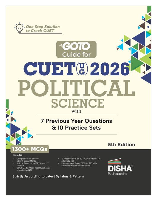 Disha’s updated 5th edition of the book ‘Go To Guide for CUET (UG) Political Science with 10 Practice Sets & Previous Year Questions’ has been prepared as per the latest pattern of CUET held by NTA in 2025.