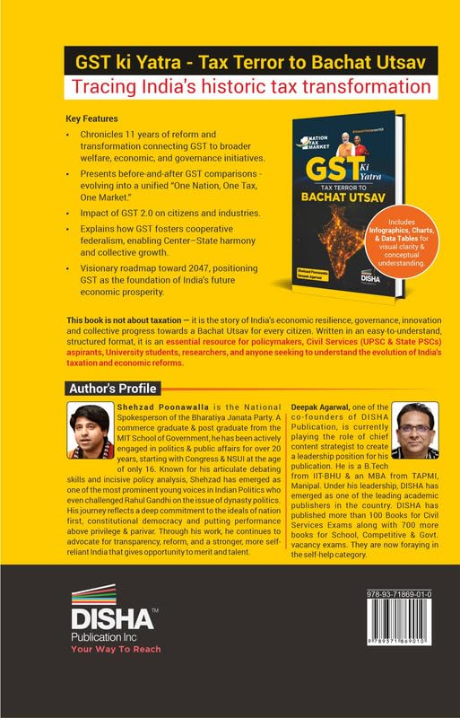GST 2.0 — From Tax Terror to Bachat Utsav is a comprehensive and reader-friendly book that traces India’s historic tax transformation under Prime Minister Narendra Modi’s leadership. The book presents a clear, data-driven, and citizen-centric narrative of how GST evolved from a complex tax regime into a simplified, transparent, and technology-driven system — ushering in what the author calls a true “Bachat Utsav” for the nation. Written in an easy-to-understand, structured format, it is an essential resource for policymakers, Civil Services (UPSC & State PSCs) aspirants, University students, researchers, and anyone seeking to understand the evolution of India’s taxation and economic reforms.