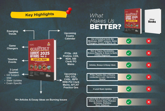 Disha s Half-Yearly Current Affairs - January to June 2025 Vol. 1 & 2 for Competitive Exams (set of 2 Quarterlies) 9th 4 Color Edition (set of 2 Quaterlies) is a unique set of 2 books as it gives the complete update of the first six months of 2025.