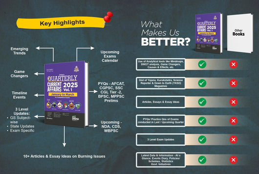 ✍ The Quarterly books talk of all the recent developments in the field of Polity, Economics, Science & Technology, Sports, Art & Culture etc.