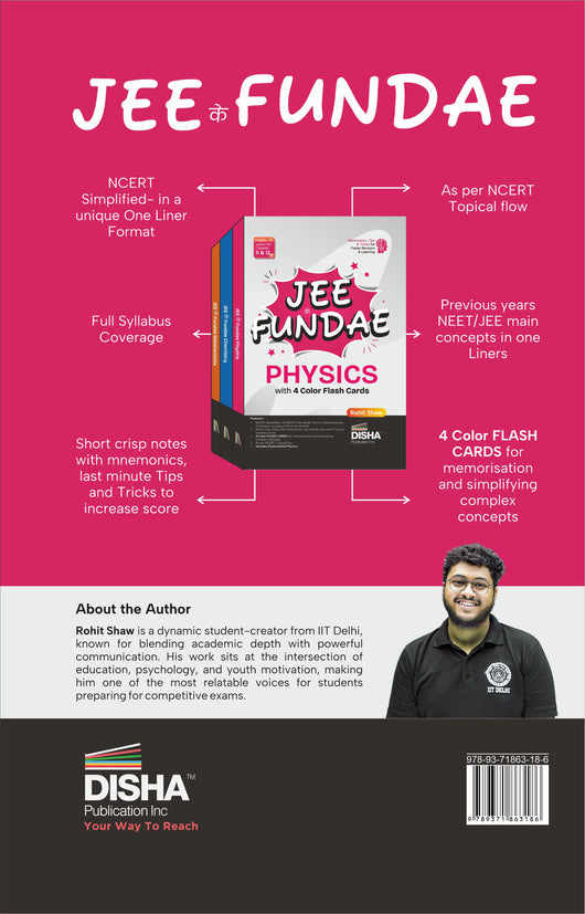 Disha's JEE Ke Fundae Physics with 4 Color Flash Cards is an important Quick Revision resource to master, JEE, NCERT Class 11 & 12 Exams. The Book contains: