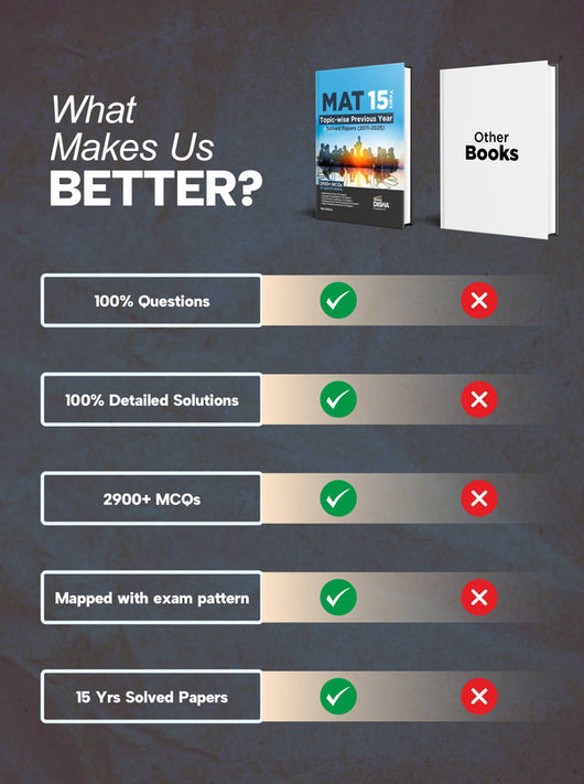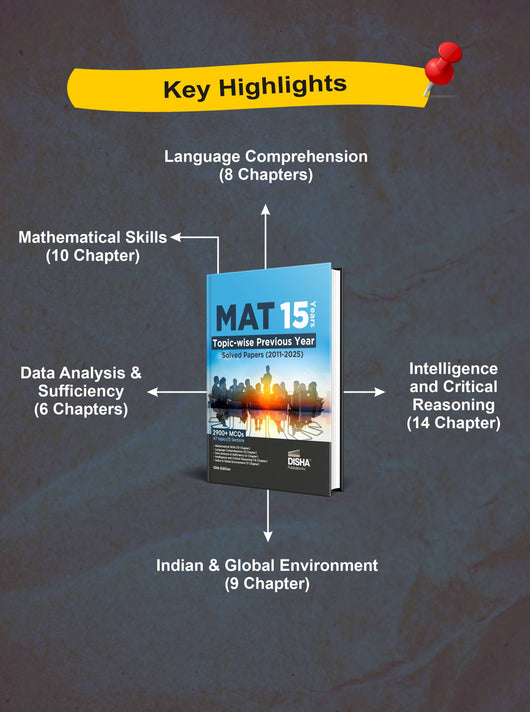 The newly updated and revised 10th edition of the book "MAT 15 years Topic-wise Solved Papers (2011 - 2025) consists of detailed solutions of the past 15 years of MAT question papers distributed in 47 topics.