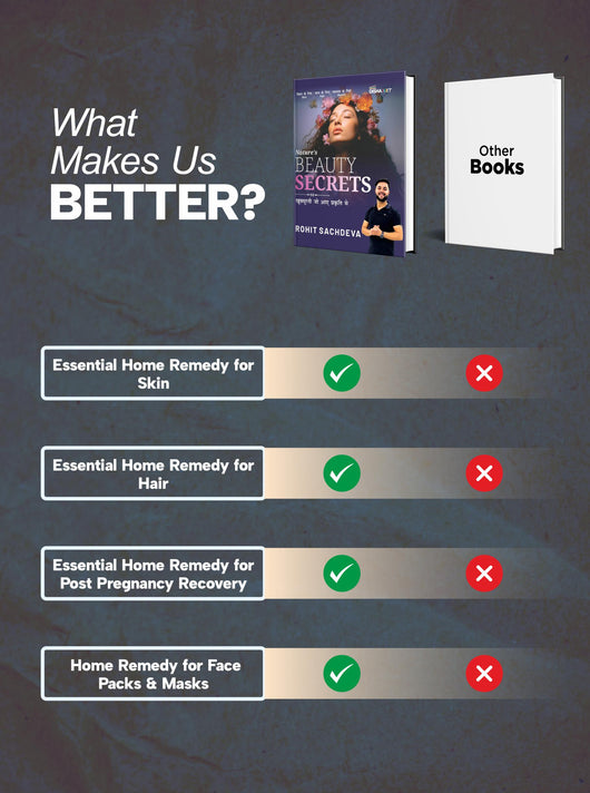 यह पुस्तक दादी-नानी के भरोसेमंद नुस्खों और आधुनिक स्किनकेयर रहस्यों का ऐसा संगम है, जो न सिर्फ़ इन समस्याओं का हल देता है, बल्कि आपकी त्वचा, बाल और व्यक्तित्व, तीनों को भीतर से निखारता है। खासकर महिलाओं के लिए इसमें गर्भावस्था (Pregnancy) के दौरान और बाद में होने वाली त्वचा व बालों की समस्याओं के सुरक्षित, आसान और देसी उपाय भी शामिल हैं, जिसमें नारियल व तिल के तेल से मालिश, हल्दी-एलोवेरा से स्ट्रेच मार्क्स की देखभाल और पोषण देने वाले घरेलू पेय आदि शामिल हैं।