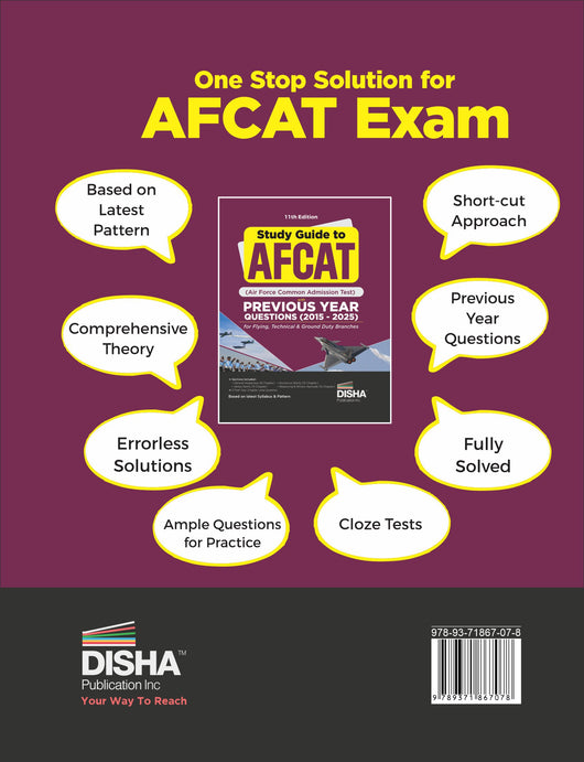 Disha Study Guide to AFCAT (Air Force Common Admission Test) with Previous Year Questions (2015 - 2025) for Flying, Technical & Ground Duty Branches 11th Edition