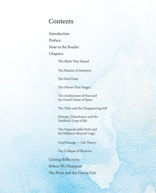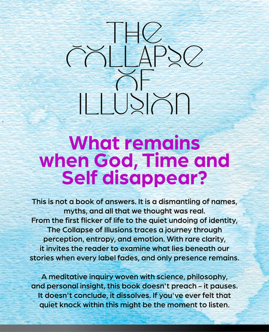 This is not a book of answers. It is a dismantling—of names, myths, and all that we thought was real. From the first flicker of life to the quiet undoing of identity, The Collapse of Illusions traces a journey through perception, entropy, and emotion. With rare clarity, it invites the reader to examine what lies beneath our stories - when every label fades, and only presence remains. A meditative inquiry woven with science, philosophy, and personal insight, this book doesn’t preach - it pauses. It doesn’t conclude - it dissolves. If you’ve ever felt that quiet knock within - this might be the moment to listen.