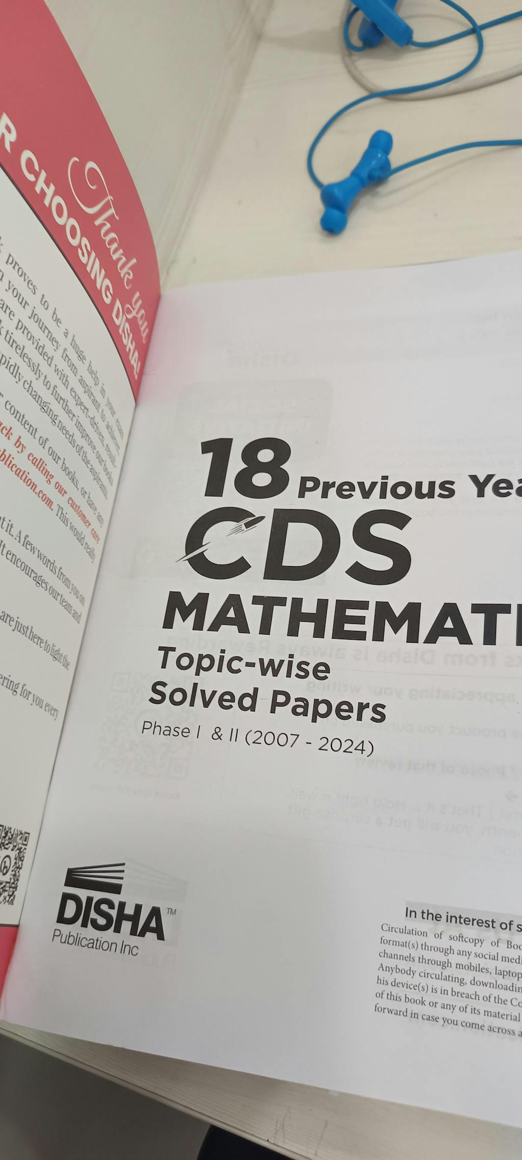 Disha 18 Previous Year CDS Mathematics Topic-wise Solved Papers Phase I & II (2007 - 2024) 5th Edition | Combined Defence Services PYQs | CDS Book 2025-2026
