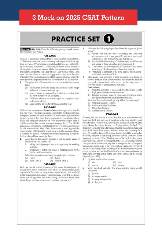 ✍ Further 3 Practice Sets/ Mock Tests on the latest CSAT Paper are provided for practice with detailed Solutions.